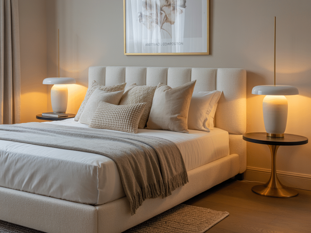 La iluminación es la clave para convertir el dormitorio principal en un espacio íntimo y acogedor. Desde las lámparas de techo que aportan la luz general hasta las lámparas de noche que invitan a la calma, cada punto de luz tiene su función para crear el ambiente perfecto. Las lámparas colgantes, los apliques de pared y las lámparas de sobremesa en las mesitas de noche añaden calidez y estilo, mientras que una iluminación regulable te permite adaptar la atmósfera según el momento del día. Con las piezas adecuadas, tu dormitorio se transforma en un refugio lleno de confort y armonía.