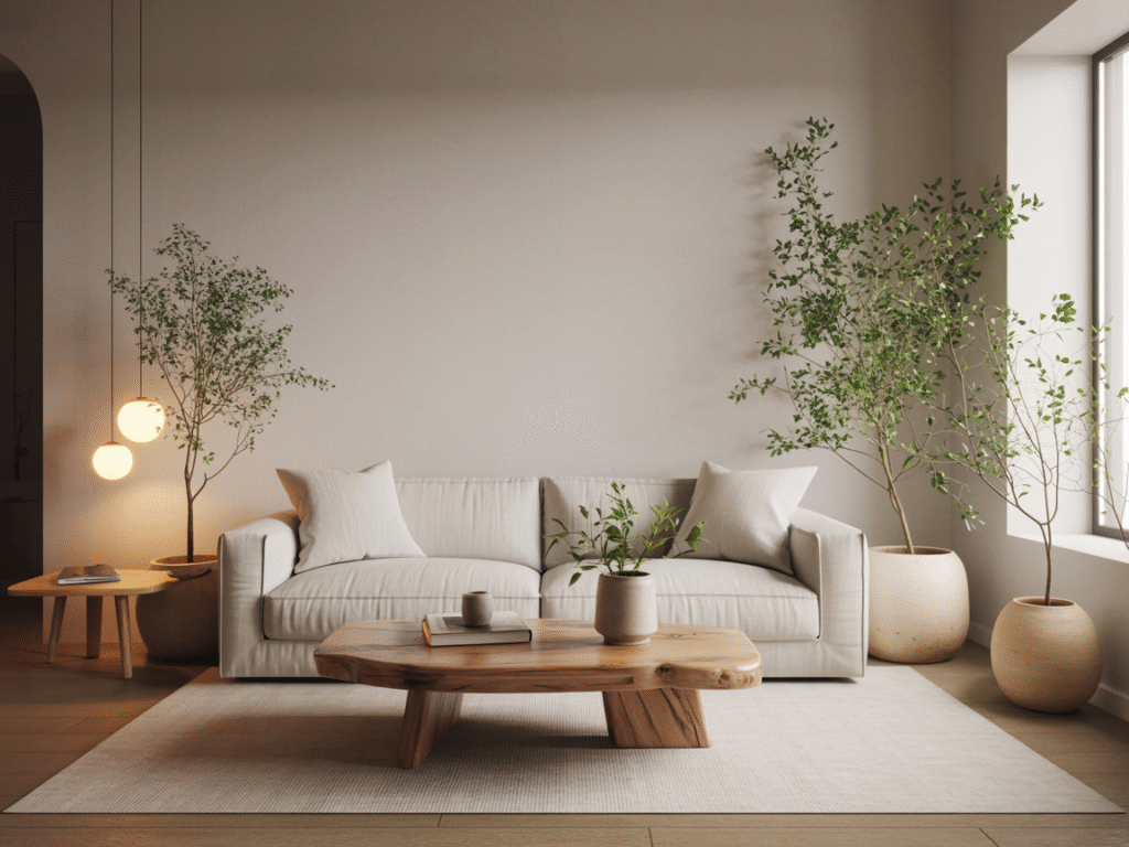 Crea un salón Japandi que invite al descanso y la calma. Combina tonos neutros, madera natural y textiles suaves para conseguir un ambiente equilibrado y acogedor.